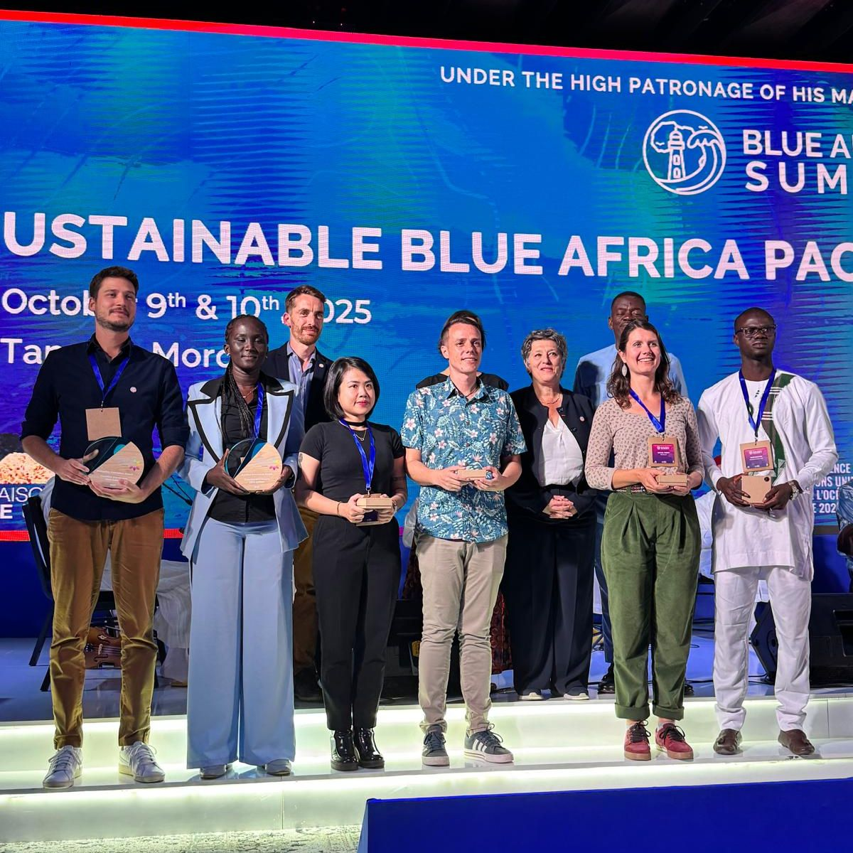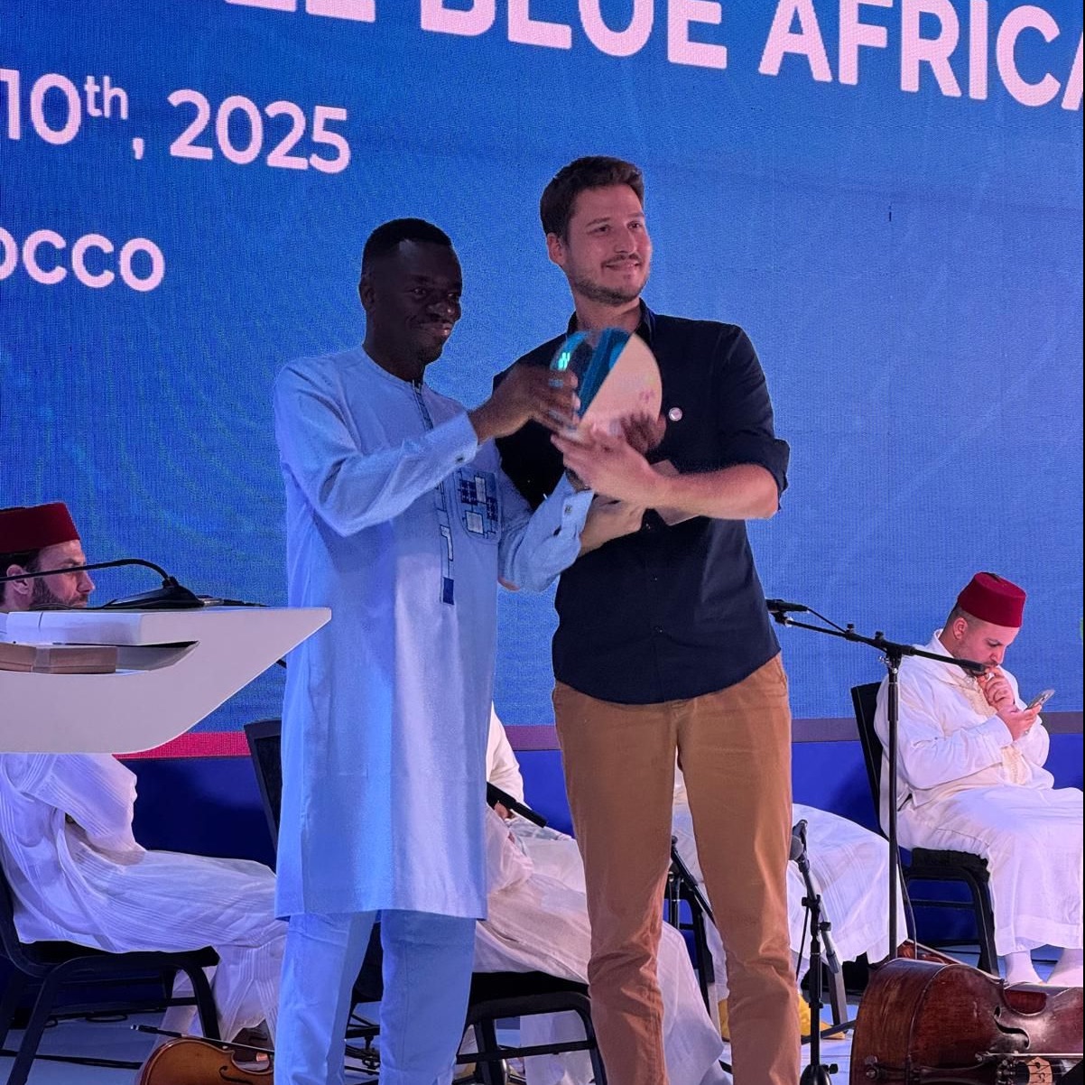 Arame DIEYE and Nicolás GARCÍA-SEYDA won the Innovation 2025 Awards at the Blue Africa Summit in Tangiers on October 9. They were chosen from among six young researchers and doctoral students for their innovative projects to promote the sustainability of coasts and oceans.
